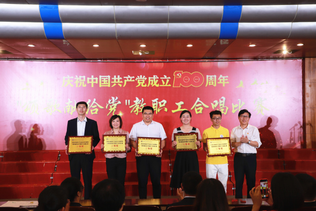 本网讯(工会 党委宣传统战部 )颂歌献给党,永远跟党走。为庆祝中国共产党成立100周年,6月3日下午,学院“颂歌献给党”教职工合唱比赛在学术报告厅举行。学院领导班子成员与400余名师生代表一同观看比赛。