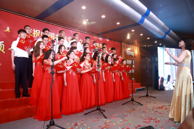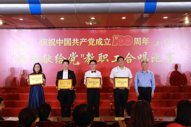 一首首主题鲜明、饱含深情的歌曲,讴歌了党的光辉伟业,点燃了每一位教职工的爱党爱国热情,现场掌声阵阵、气氛热烈。