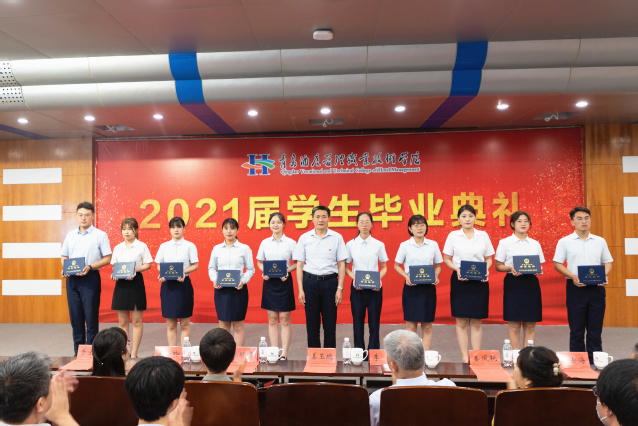 毕业典礼采用线上线下相结合的方式举行。学院领导、相关职能部门负责人、辅导员和教师代表、学生家长、全体毕业生参加典礼。