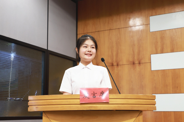 毕业生代表、2018级商务英语2班段宇欣同学发言,她表示将秉承“勤、真、灵、雅”的校训,微笑前行,不辜负祖国、不辜负民族,让青春在奋斗中绽放绚丽之花。