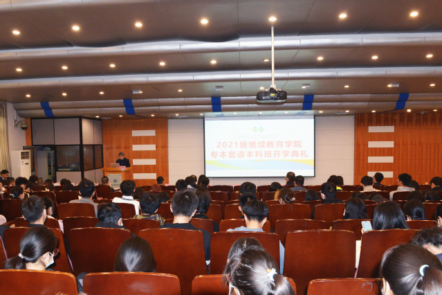 本网讯(继续教育学院)11月18日,学院2021级专本套读本科班开学典礼在学术报告厅举行,学院副院长宫恩龙参加活动。