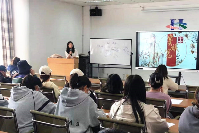 基础教学部孙元元老师以“《窦娥冤》与中国古代悲剧”为题,向大家讲解了元杂剧的结构、角色、剧本构成等基本知识,并通过展示和分析不同地域、不同戏曲剧种对《窦娥冤》的演绎,使大家对中国悲剧有了更深刻、更全面的了解和认识。