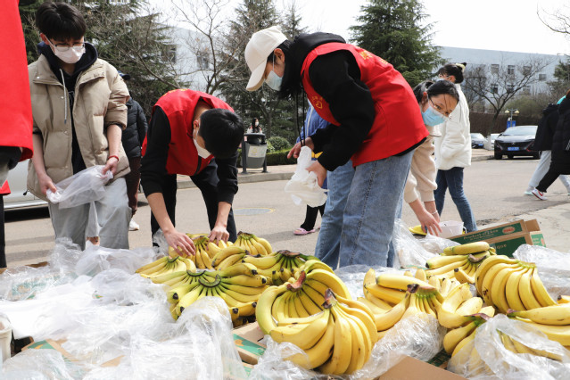本网讯(党委宣传统战部 总务处)疫情拦路,爱不止步。本轮疫情发生以来,东、西餐厅各餐饮公司主动联系学校,为师生免费派发“水果大礼包”。3月20日,东餐厅青岛弘康酒店管理有限责任公司第一个为在校师生免费派发了“水果大礼包”,1100多箱,5万斤。苹果、水晶梨、沃柑、香蕉4种水果,每种2个,共8个。丰富的品类让封闭在校园的广大师生们实现了水果“自由”,在这场疫情“倒春寒”里,也让师生们切身感受到了来自学校的关爱和温暖。