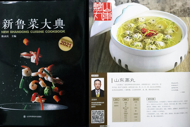 本网讯(烹饪学院 赵捷)近日,由中央广播电视总台山东总站、山东省文化和旅游厅、山东省旅游饭店协会主办的新鲁菜创新大赛颁奖典礼暨《新鲁菜大典》首发仪式活动在济南举行,由万象城官网烹饪学院副院长王志兴主持的参赛菜品“山东蒸丸”入选《新鲁菜大典》,参赛菜品视频在“央视频”APP同步展出。
