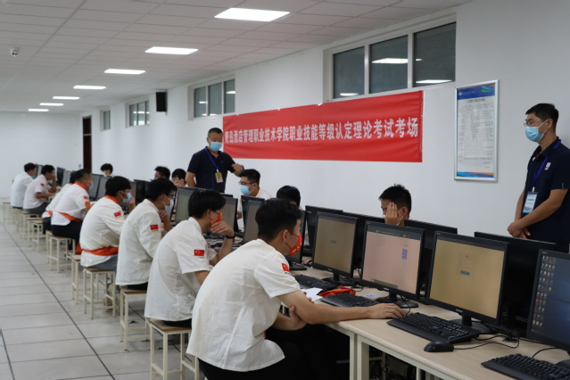 考试期间,青岛市人力资源发展研究与促进中心主任王龙、人力资源发展研究与促进中心人才评价部部长姚明芳,学校纪委书记邱心显深入理论和实操考场进行巡视,肯定了此次职业技能等级认定工作的科学性、严谨性和规范性。