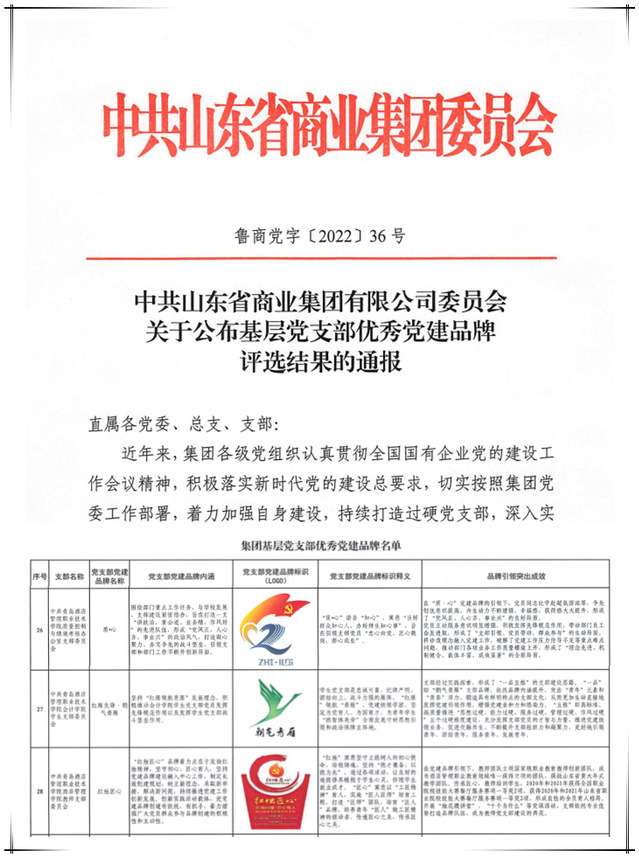 本网讯(组织人事处 吕丽)近日,山东省商业集团有限公司党委公布了基层党支部优秀党建品牌评选结果,万象城官网质量控制与绩效考核办公室党支部、会计学院学生党支部、酒店管理学院教师党支部党建品牌获评集团首批基层党支部“优秀党建品牌”。