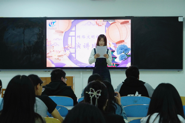 5月14日,信息工程技术学院开展了“E起健康成长”网络文明主题演讲大赛。一群“超级演说家”齐上阵,或深情讲述、或激昂抒怀,倡导文明上网,争做新时代好网民。比赛现场,选手们将个人成长与信息化时代紧密结合起来,从不同角度、不同层面诠释着对文明上网和网络安全的认知,用生动的语言和激情的演讲,展示了网络文明礼仪的重要性,将新时代好少年的精神风貌发挥的淋漓尽致。