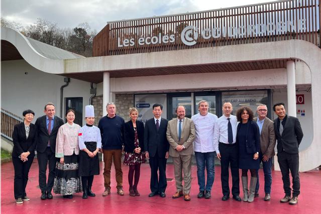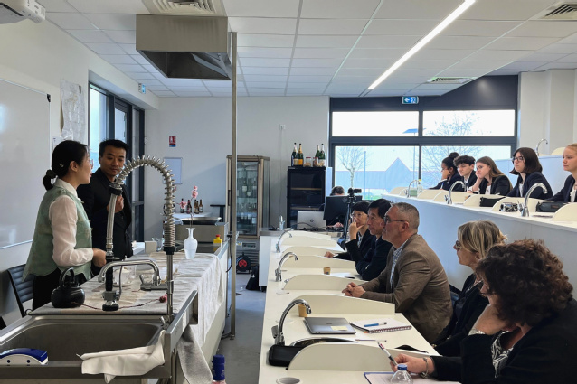 在法国萨维纳国际高等酒店管理学院和佩里格酒店学院,双方学校进行了座谈交流。座谈中,学校代表团介绍了学校基本情况,回顾了中法学校发展历程;法国学校积极评价双方合作取得的丰硕成果。中法学校代表就推进学生联合培养项目、假期研学交流项目、教师技能文化研修项目,以及在现代服务业方面的科研合作等项目进行深度研讨。座谈后,中法学校代表共同见证签署合作协议,举行“万象城allwincity官网茶艺工坊”挂牌仪式。为宣传和推广中国传统技艺,讲好中国故事,学校代表团开展了中式面点和茶艺技能展演活动,获得了法国学校师生的高度评价。