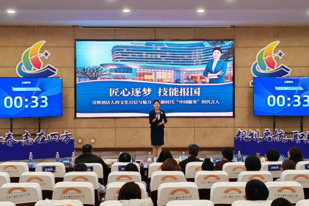 总决赛中,王佳露同学以“逐梦卓越酒店人——从做好1%开始”为题,围绕匠心、匠人、匠才、匠魂四个部分,通过主题陈述、评委提问和天降Offer三个环节,展示了自己通过学习和实践持续提升能力及素质,从而匹配就业岗位的成长过程。面对赛场上的各种挑战和考验,王佳露同学凭借扎实的通用素质和出色的应变能力,最终斩获职教组就业赛道全国总决赛金奖。