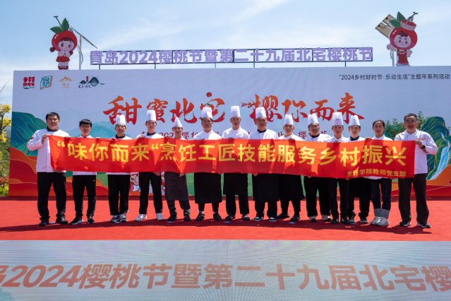 党员教师积极参与乡村振兴、产业数字化转型等国家重大战略,结合餐饮产业发展特点、烹饪行业前景方向,组织“味你而来·烹饪工匠技能服务队”以崂山区北宅特色食材宴席开发为契机,开发“状元樱桃宴”,将进士文化与区域民俗文化、饮食文化相融合,把“进士及第”“状元戴冠”等20余道文化菜品普及到近百家农家宴,研发数智化菜品200余道,为数字厨电产业提供技术支持。通过服务国家重大战略,锻造自身新质教学能力,将“国家大事”细化为“家家己事”,身正为范以资青年学生明德笃行典型工作案例《打造特色党建品牌“一融双高”共生共长》被《大众日报》报道。