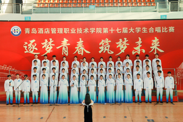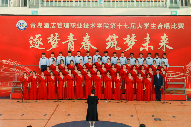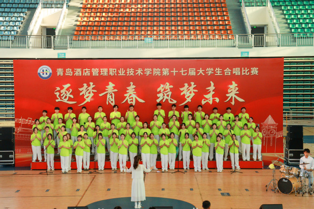 本网讯(团委 孙梦男)逐梦青春,筑梦未来。6月13日下午,学校第十七届大学生合唱比赛在体育馆举行,学校副校长宫恩龙参加活动。活动邀请李沧团区委副书记赵文苑,青岛科技大学音乐系副主任、校团委兼职副书记王邑,学校教师王劭铭、赵旭担任评委。