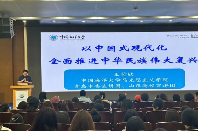 本网讯(马克思主义学院 王萍)为深入学习贯彻党的二十大精神,加强新时代高校思想政治理论课建设,加强职业教育领域的思想政治引领,6月17日下午,马克思主义学院举办“同上一堂大思政课”暨“思政名师进校园”活动,邀请中国海洋大学马克思主义学院副院长王付欣教授举办“以中国式现代化全面推进中华民族伟大复兴”专题讲座。